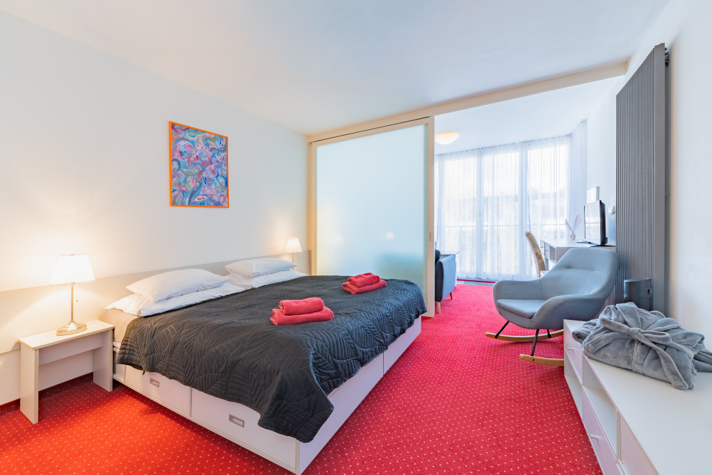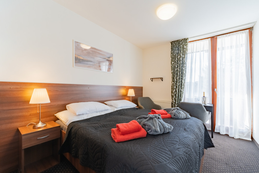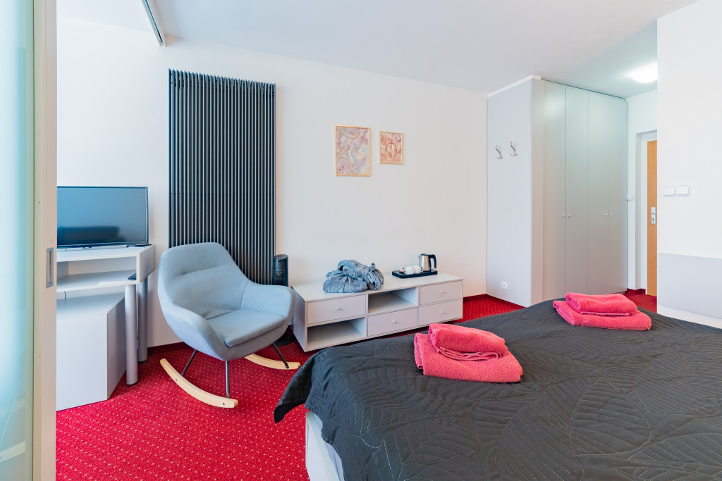 - Dvoulůžkové pokoje LUX se nacházení v Pavilonu. Skládají se ze 2 pokojů a mají manželské postele, jsou vybaveny sadou na vaření s kávou a čajem.