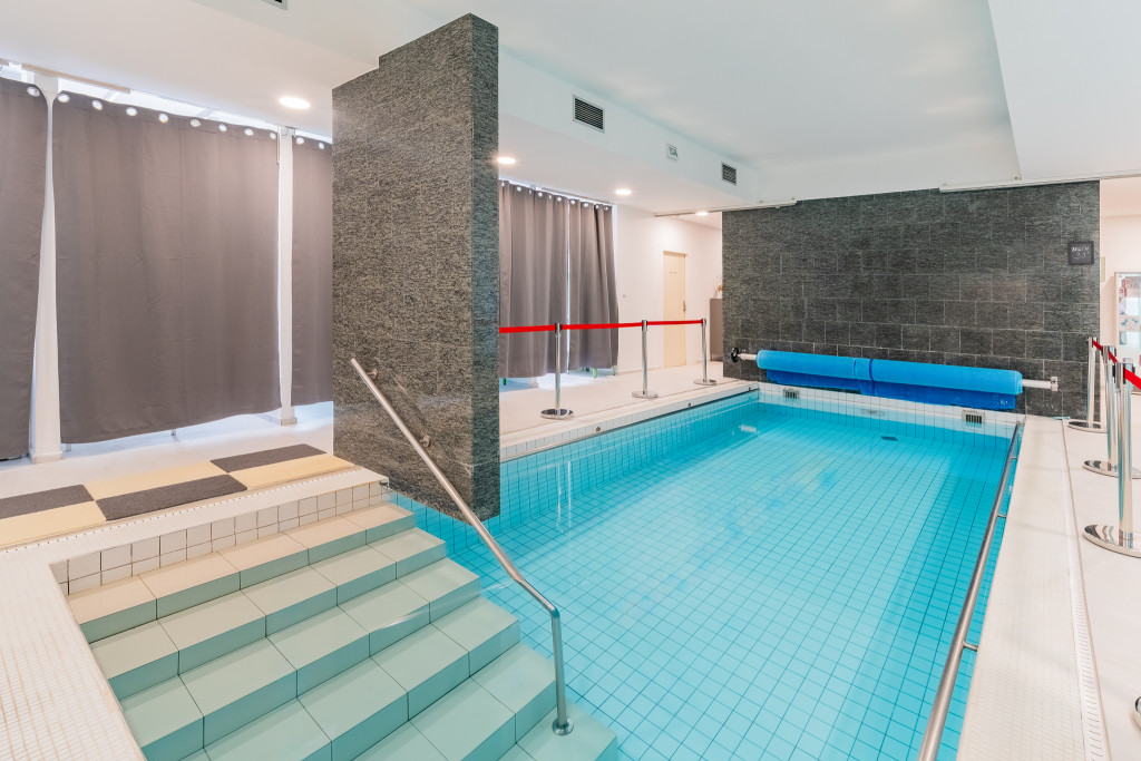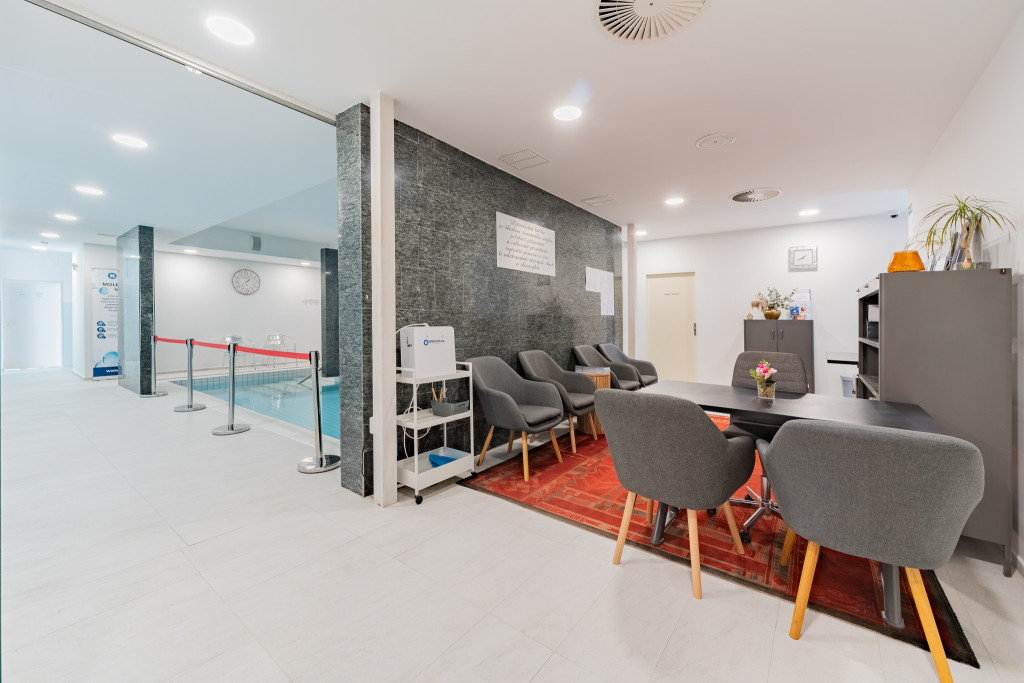 - Vnitřní bazén s protiproudem, solná jeskyně a infra sauna v lázeňské části.